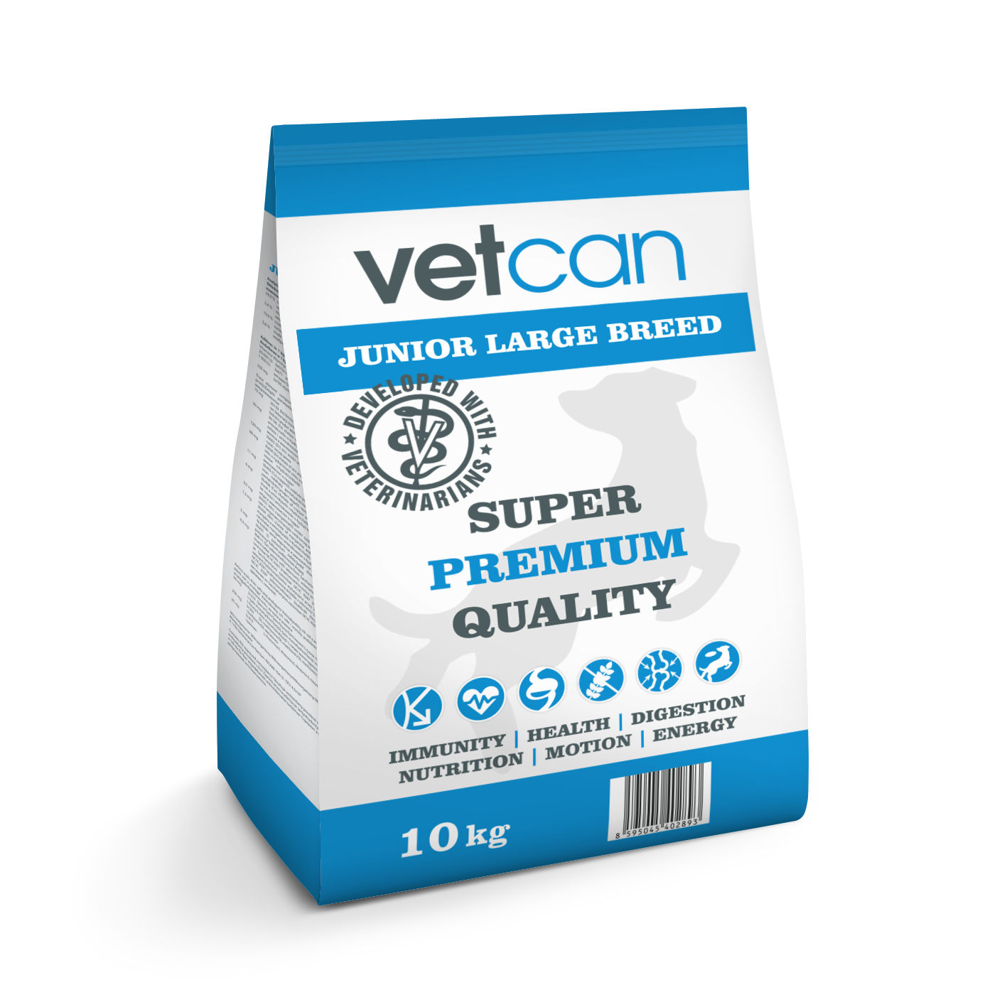 Vetcan Junior Large Breed je plne vyvážené kompletné krmivo, špeciálne vyvinuté tak, aby vyhovovalo špecifickým potrebám šteniat a mladých psov veľkých plemien. Je vyrobené z najkvalitnejších surovín dostupných na svetových trhoch. Kvalitné mäsové múčky (len rybia a hydinová – obsah 41 %) sú vynikajúcim zdrojom bielkovín. Doplnené esenciálne aminokyseliny dolaďujú pomer aminokyselín a umožňujú maximálnu stráviteľnosť a využiteľnosť bielkovín z krmiva, zaručujú primeraný rast a rozvoj mladého organizmu. Obilniny a tuky poskytujú optimálnu hladinu energie. Antarktický krill (malé morské kôrovce), je zdrojom vysoko kvalitných bielkovín a tukov, ktoré sú bohaté na potrebné a životne dôležité Ω-3 polynenasýtené mastné kyseliny. Ďalej obsahuje najsilnejší prírodný antioxidant astaxanthín. Pridané doplnkové látky udržujú organizmus v požadovanej kondícii, zdravotnom stave a zabraňujú vzniku rastových problémov.