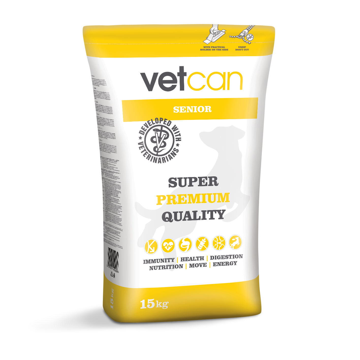 Vetcan Senior je kompletné krmivo, ktoré je špeciálne zostavené pre staré psy a pre psy s nadváhou. Špeciálne vyvinutá receptúra so zvýšeným obsahom minerálnych látok, chondroprotektív a vitamínov, dodáva psom všetko potrebné k ich životu v seniorskom veku. Použité suroviny a kombinácie špeciálnych aditív znižujú príznaky starnutia, zlepšujú kondíciu a pohyblivosť. U psov s nadváhou popr. so sklonom k priberaniu napomáha udržať optimálnu hmotnosť.Antarktický krill (malé morské kôrovce) je zdrojom vysoko kvalitnej bielkoviny a tukov, ktoré sú bohaté na potrebné a životne dôležité Ω 3 polynenasýtené mastné kyseliny. Ďalej obsahuje najsilnejší prírodný antioxidant astaxantín ktorý spolu s ďalšími antioxidantmi bojuje proti voľným radikálom, ktoré sú hlavnou príčinou starnutia.